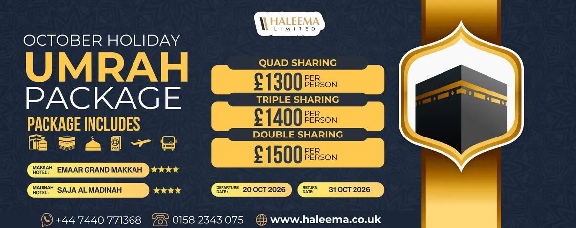 Join Haleema Limited for an unforgettable Umrah experience where spirituality meets luxury. Discover the beauty of Umrah with our October 4 Star Umrah Package, crafted to ensure every moment of your journey is filled with peace, reflection, and spiritual growth.